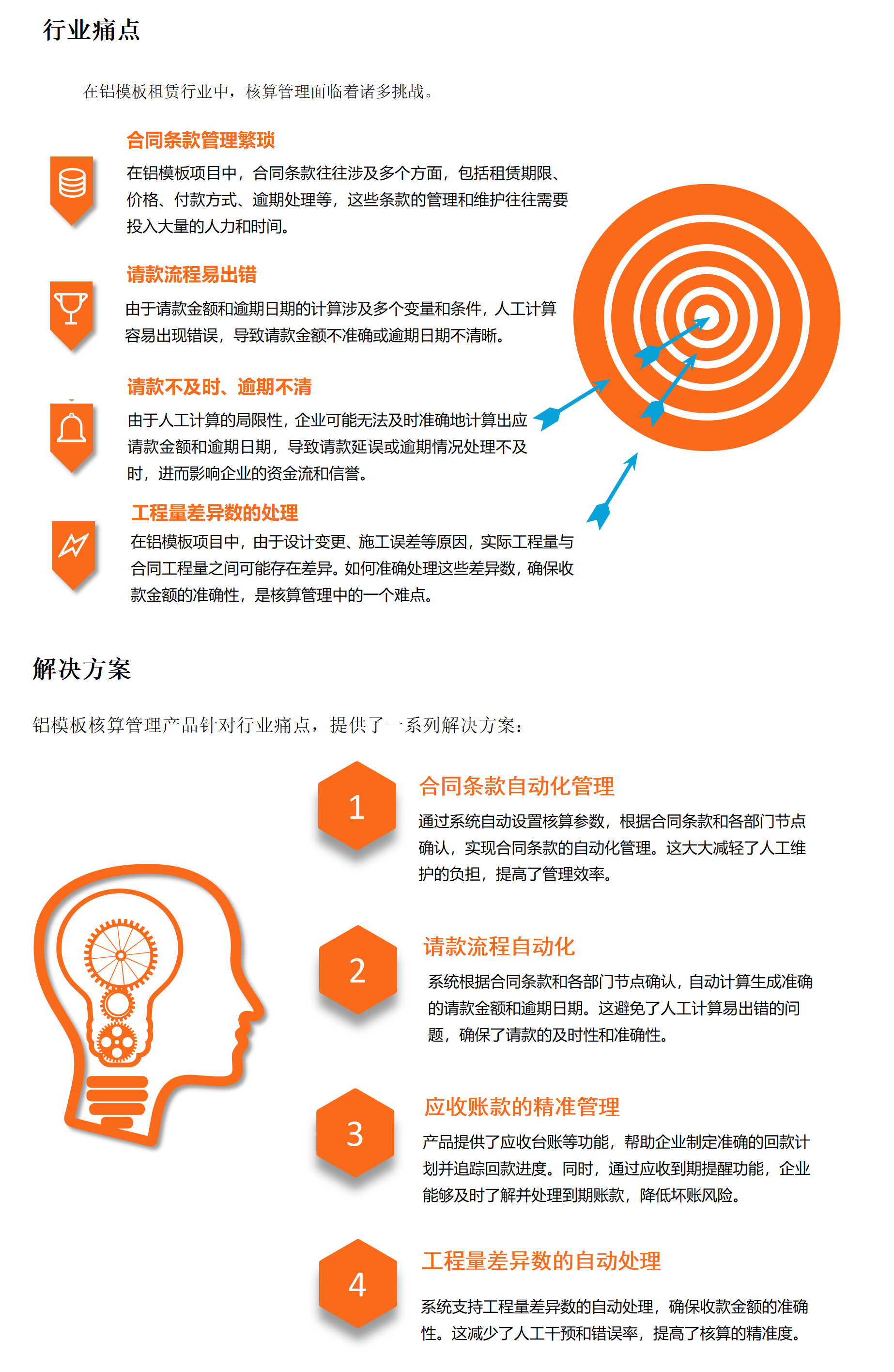 鋁模板核算管理產品是專為鋁模板租賃行業打造的一款高效、精準的財務管理工具。該產品通過集成先進的財務管理理念和技術手段,實現了對鋁模板項目中合同條款管理、請款流程自動化、應收賬款精準管理等關鍵環節的全面優化,幫助企業提升核算效率,降低管理成本,確保資金流的順暢運作。 鋁模板核算管理產品,作為鋁模板租賃行業的財務管理利器,旨在為企業提供一站式的核算解決方案。通過集成先進的自動化和智能化技術,本產品能夠實現對合同條款、請款流程、應收賬款等關鍵環節的精準把控,幫助企業優化管理流程,提升資金效率,降低經營風險。