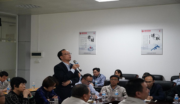 新合鋁業董事長李董、新合鋁業總經理潘總、新合鋁業總經理助理李總、新合各部門負責人、浩泰科技負責人梁總、技術部鄭經理、實施部李經理及項目實施組成員等出席了本次會議。